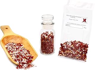 Chili Salz extrascharf, Chili-Salz grob, Gewürz feurig-salzig, Chili extrascharf, Chilies, chilisalz grob, Urmeersalz grob, Meersalz Chili Gewürz, 25g