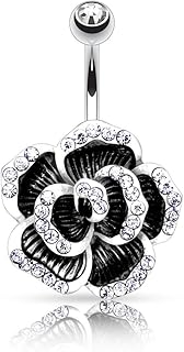 Bauchnabelpiercing Chirurgenstahl Stab | Piercing Banane Bauch Bauchnabel Stecker Doppel Kugel Rosenblüte schwarz mit Kristallen