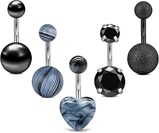 14G Bauchnabelpiercing Chirurgenstahl Bauchnabel Piercing Perle Herz Matte Kugel Striped Kugel 8MM Piercing Körperschmuck Damen Herren