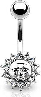 Bauchnabelpiercing Chirurgenstahl Stab | Piercing Banane Bauch Bauchnabel Stecker Kugel Sonne mit klaren Glitzer Kristallen Silber