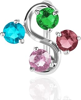 Bauchnabelpiercing Top Down Chirurgenstahl mit 4 Kristallen | Farbenauswahl