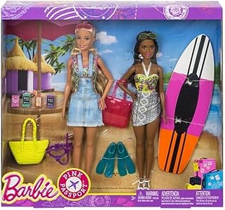 Mattel Barbie FNY92 Surfer Urlaub Set mit 2 Barbie-Puppen Pink Passport .