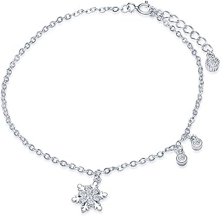 Klassisch Schneeflocke Damen Armband 925 Sterling Silber Zirkonia Armkette Verstellbar Charm Armkettchen Armreif, Silber