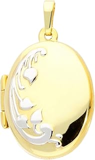Medaillon Anhänger Gelbgold 375 Gold (9 Karat) Aufklappbar Für 2 Fotos 30mm x 17,5mm Oval Kettenanhänger Geschenk Für Frauen Muttertag Springtime A-03797-G601