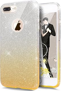 Kompatibel mit iPhone 6S Plus Hülle,iPhone 6 Plus Hülle,Color Gradient Glänzend Glitzer Diamant Rhinestone 3 Layer Hybrid Semi-transparent TPU Silikon Crystal Handyhülle Case Cover Schutzhülle,Gold