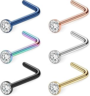 6STK L Förmig Nasenring Gebogen Nasen Stud 316L Chirurgenstahl Nasenpiercing Schmuck 22G 20G 18G mit 2mm Steine