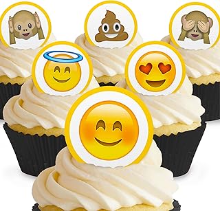 Cakeshop 24 x Vorgeschnittene und Essbare Emoji Kuchen Topper (Tortenaufleger, Bedruckte Oblaten, Oblatenaufleger)