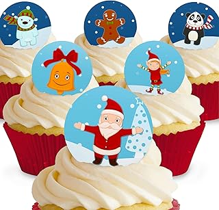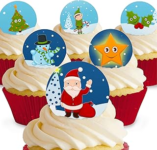 Cakeshop 24 x Vorgeschnittene und Essbare Weihnachten Kuchen Topper (Tortenaufleger, Bedruckte Oblaten, Oblatenaufleger)