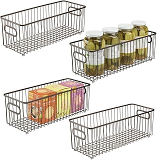 mDesign 4er-Set Küchenkorb aus Metall – flexibler Aufbewahrungskorb für die Küche, Vorratskammer etc. – langer und universeller Drahtkorb mit Griffen – bronzefarben