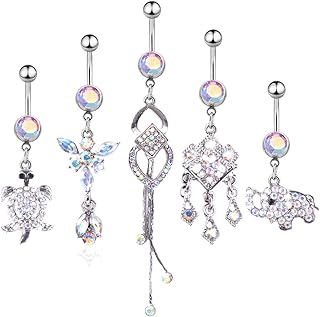 5 Stück Bauchnabel Ring Baumeln Nabel Ringe Elefant Quaste Schildkröte Form Körper Piercing Schmuck für Mädchen Frauen