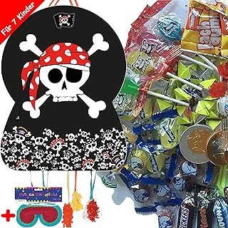 Pinata-Set * Piraten * mit riesengroßer Piñata + Maske + 100-teiliges Süßigkeiten-Füllung No.1 von Carpeta | Spanische Zugpinata für bis zu 7 Kinder | Tolles Kinderpiraten-Spiel zum Kindergeburtstag