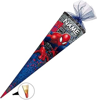 alles-meine.de GmbH Schultüte - Spider-Man / Spiderman - 85 cm - eckig - incl. große Schleife - Tüllabschluß - Zuckertüte - mit / ohne Kunststoff Spitze - Nestler - Schultüte..