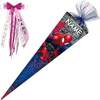 Nestler personalisiert mit Name und Schleife - 6859416 Schultüte Spiderman, 85 cm 6-eckig