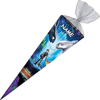 Nestler personalisiert mit Name - Schultüte Drachenzähmen 3 - 85 cm - eckig- geheime Welt Lizenz Zuckertüte Dragons Schulanfang Schuleinführung