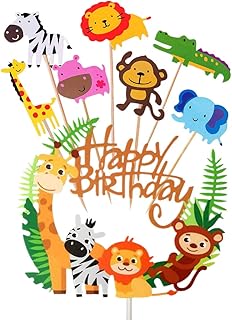HONGECB Zoo Kuchendeckel Topper, Kuchendeko Tiere, Zoo Dschungel Themed Kuchendeckel, Dschungel-Themed Tier Cupcake Toppers, Löwe Nilpferd AFFE Elefant Giraffe Zebra Krokodil, 36 Stück