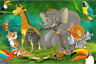 GREAT ART® XXL Poster Kinderzimmer – Dschungel Safari – Dekoration Natur Tierpark Wilde Tiere Giraffe Elefant Affe Löwe Papagei Kinder Wandposter Wandgestaltung Comic Style (140 x 100 cm)