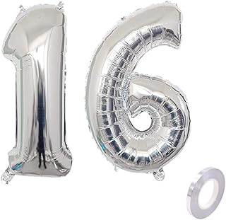 Haosell Party Folienballon Zahl 16 Silber Helium Luftballon Nummer 16 Geburtstag Nummer 16 Geburtstag Party Dekoration Luftballon Geburtstag XL Folienballon 32" Geburtstagsdeko Ballon Zahl 16
