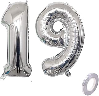 Haosell Party Folienballon Zahl 19 Silber Helium Luftballon Nummer 19 Geburtstag Nummer 19 Geburtstag Party Dekoration Luftballon Geburtstag XXL Folienballon 40" Geburtstagsdeko Ballon Zahl 19