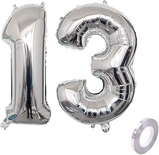 Haosell Party Folienballon Zahl 13 Silber Helium Luftballon Nummer 13 Geburtstag Nummer 13 Geburtstag Party Dekoration Luftballon Geburtstag XXL Folienballon 40" Geburtstagsdeko Ballon Zahl 13