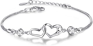 Huture Liebe Armbänder Doppel Herz Armbänder Damen Armband S925 Sterling Silber Verstellbare Armbänder mit Herz Kristall Armkette Link Herz Armband I Love You Armband für Mädchen Geschenke