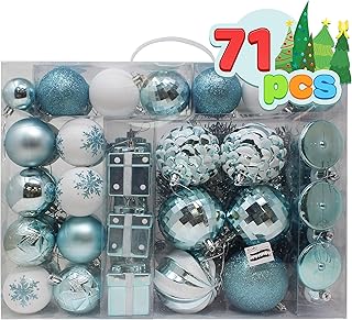 Joiedomi 71 Stück blaue und weiße Weihnachtsornamente mit einer silberfarbenen Stern Baumspitze, bruchsichere Weihnachtsschmuck für Feiertage, Partydekoration, Baumschmuck, Veranstaltungen Weihnachten