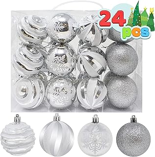 Joiedomi 24 Stück Weihnachtskugel-Ornamente, luxuriöse, bruchsichere Weihnachtsdekoration für Feiertage, Party-Dekoration, Baumschmuck und besondere Anlässe (Silber und Weiß, 6 cm)
