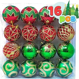 Joiedomi 16 Stück 8 cm rot, grün und gold Weihnachtsschmuck, bruchsichere Weihnachtsschmuck für Feiertage, Partydekoration, Baumschmuck und Veranstaltungen