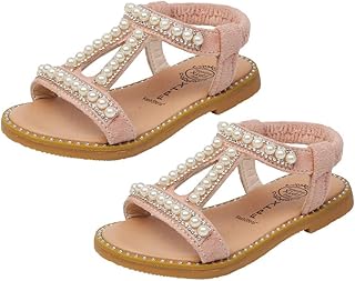 Mädchen Sandalen Leder Mit Perle Prinzessin PU Sommer Schuhe Atmungsaktive Flache Sandalen Schuhe Offene Spitze für Kinder Kinder - 25 Yard (Pink)