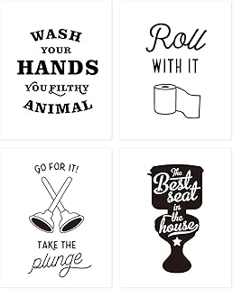 ANHUIB 4er Set Badezimmer Lustige Sprüche Poster,Bild mit Spruch, Badezimmer Toilette Zitate Wanddekoration Bild,Schwarz weiß Bilder, Wandbild für Bad WC,Wandkunst Home Decor,ohne Bilderrahmen,20×25CM